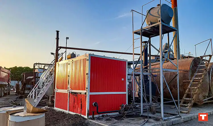 Для организации подачи теплоносителя (термального масла) в регистры битумной плавильни и резервуара, используются термомасляные котлы.