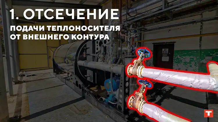 Так как термические масла не вызывают коррозии — сливать теплоноситель из котла нет необходимости. Для отсечения от внешнего контура необходимо закрыть задвижки «подачи» и «обратки».