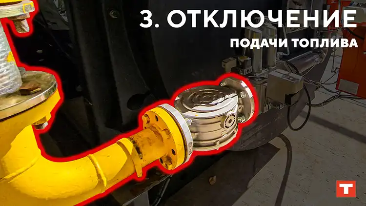 При работе на газовом топливе — необходимо закрыть газовую задвижку, стравить давление. На последнем запирающем устройстве газовой обвязки произвести пломбировку в закрытом положении.