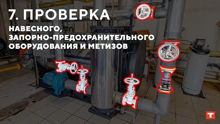 Проверить трубки напоромера, подвесы кабельно-проводниковой продукции, осмотреть прокладки и сальники запорной арматуры на подтеки.