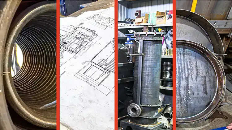 Следующая стадия — вальцовка обечаек котла и крышек. После того, как обечайка приняла свою форму, также проверяется диаметр и соответствие другим размерам.