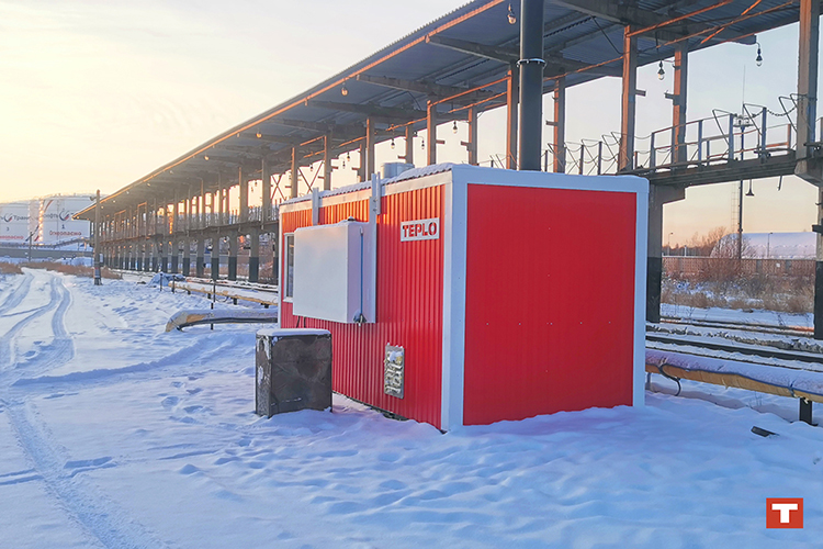 Парогенератор TEPLO в блок-контейнере на жд станции, предназначенной для выгрузки нефтепродуктов.