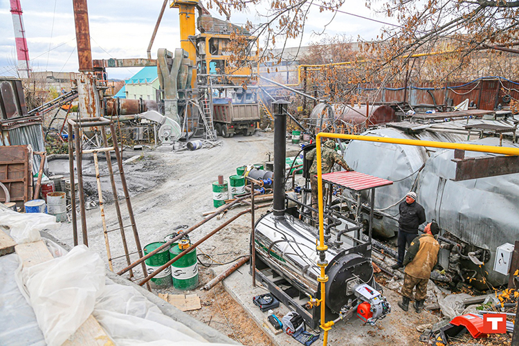 КТМ-0,5, работающий на газовом топливе в составе битумного хозяйства АБЗ, в г. Миасс, Челябинская область.