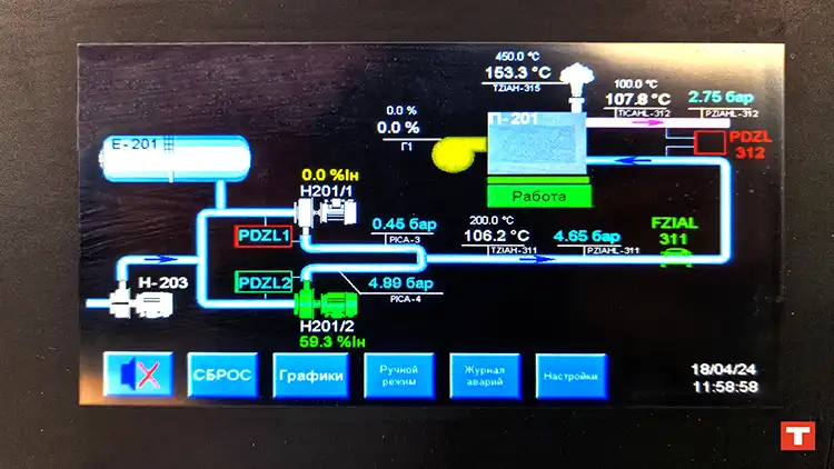 Производство любой «химии» — очень сложный процесс, который требует очень строгого соблюдения всех технических регламентов, в том числе и температурных режимов подачи теплоносителя. Для своих клиентов из химической отрасли, отдел автоматизации TEPLO разрабатывает программное обеспечения для управления термомасляным котлом, которое обеспечивает возможность чётко регулировать температуру подачи теплоносителя в заданные временные рамки.