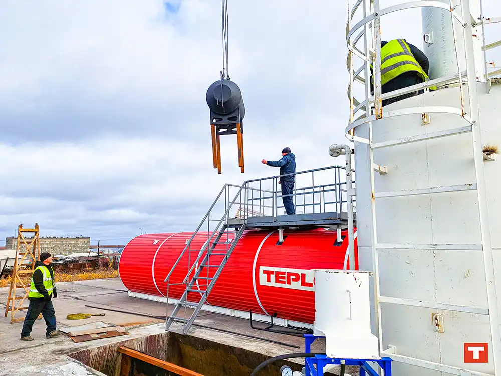 На север Красноярского края, в посёлок Хатанга была отгружена битумная ёмкость от TEPLO — БХ-45, совместно с термомасляным котлом КТМ-0,5. Совместное использование в тандеме двух установок, обеспечит хранение, нагрев и подачу битума на асфальтобетонный завод.