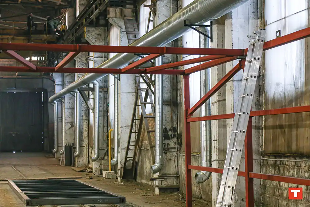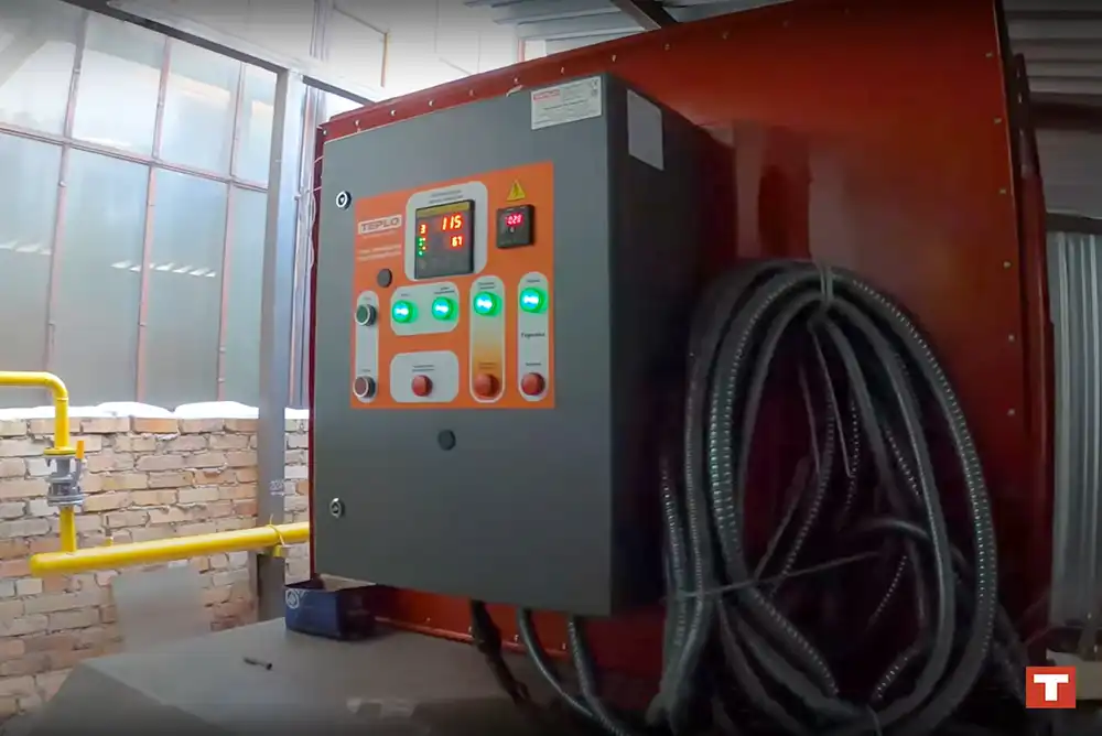 Для данного объекта, завод TEPLO предложил установку теплогенератора ТГВ-600 для отопления с системой воздуховодов из нержавеющей стали. Теплогенератор выполнен в комплектации «на раме» с газовой горелкой «Baltur», которая дополнительно защищена кожухом от воздействия от осадков.