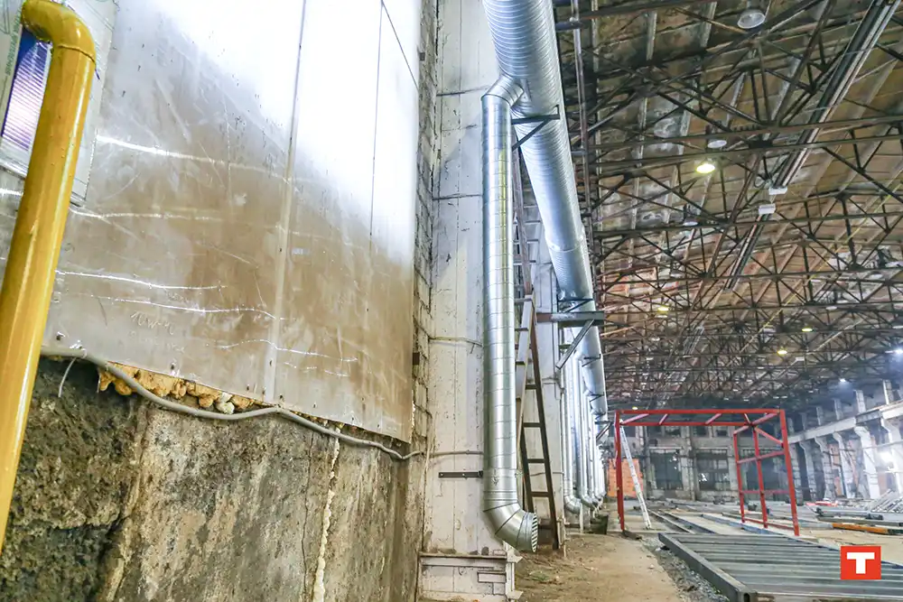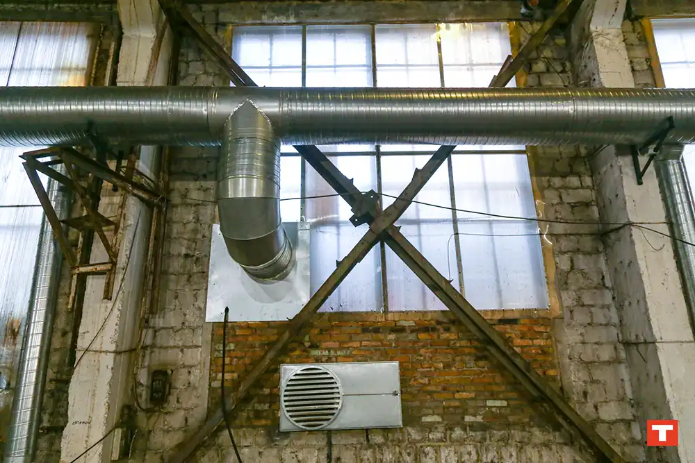 Проработать систему отопления производственного помещения, площадью 3000 кв. м. с высотой потолков более 10 метров.
