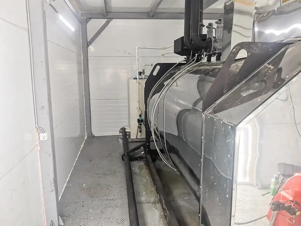 Так как на объекте отсутствует подвод газа — было принято решение остановить выбор на комплектации с дизельной горелкой. Также, был установлен топливный бак для ДТ с визуальным контролем уровня, объемом 600 литров. Работы по обогреву проходят на улице, в связи с этим, была предложена комплектация в утеплённом блок боксе. Также, на площадке отсутствовало водоснабжение, но была возможность привозить воду. В связи с этим, принято решение установки емкости 30 м.куб для подпитки парогенератора водой