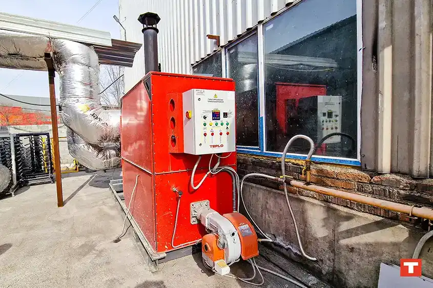В городе Магнитогорск, собственник, при сдаче в аренду помещения под грузовой автосервис, для осуществления подачи тепла на данный участок, выбрал оборудование от завода TEPLO — теплогенератор ТГВО-450 для систем отопления.