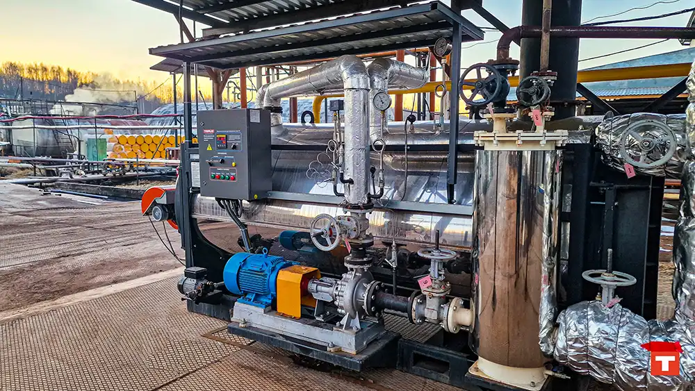 В город Пермь, на одно из предприятий по производству буровых жидкостей для нефтедобывающей отрасли был отгружен, установлен и запущен в эксплуатацию термомасляный котёл КТМ-1,0. Маслонагревательная установка обеспечивает подачу термального масла с температурой до +300 °С, давлением 0,6 МПа и теплопроизводительностью 1 МВт в химические реакторы где происходят процессы испарения, плавления или кристаллизации.